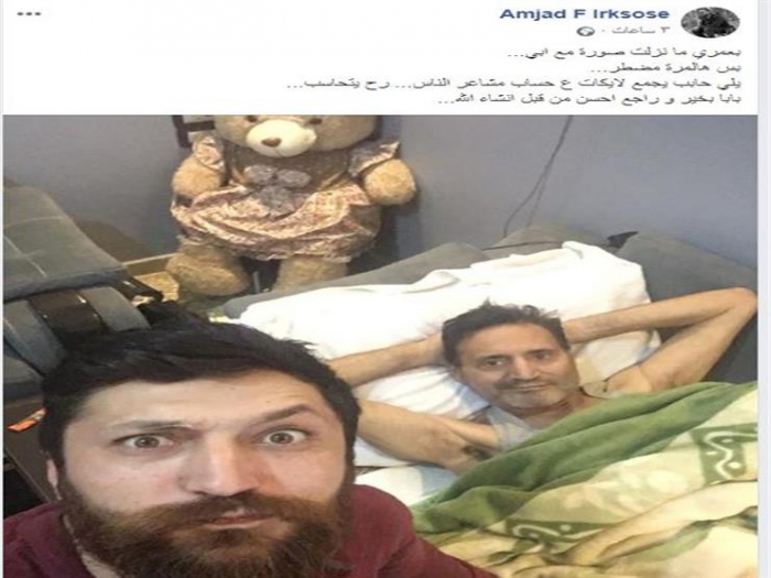 ونفى أمجد عرقسوسي، الشائعات عبر حسابه الشخصي على موقع "فيسبوك"، ونشر صورة تجمعه بوالده، معلقًا "بعمري ما نزلت صورة مع أبي، بس هالمرة مضطر، يلي حابب يجمع لايكات ع حساب مشاعر الناس رح يتحاسب.. بابا بخير.. وراجع أحسن من قبل إن شاء الله".