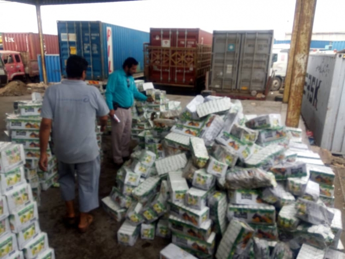 وسارعت الفرق بعد إفراغ حمولة 3 شاحنات وصلت إلى ميناء الجمارك بالمنطقة الحرة إلى فحص محتوياتها ومن ثم إتلافها عقب اكتشاف فسادها.