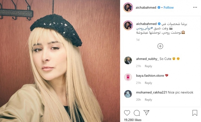 وعلقت عائشة على الصورة: "برشا شخصيات في وقت ضيق توأم روحي، توحشت روحي، توحشتها عيشوشة".