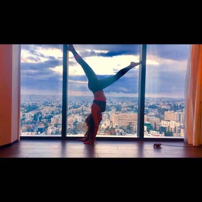 وظهرت ناهد في الصورة وهي تمارس رياضة "اليوجا" من عمّان في الأردن.