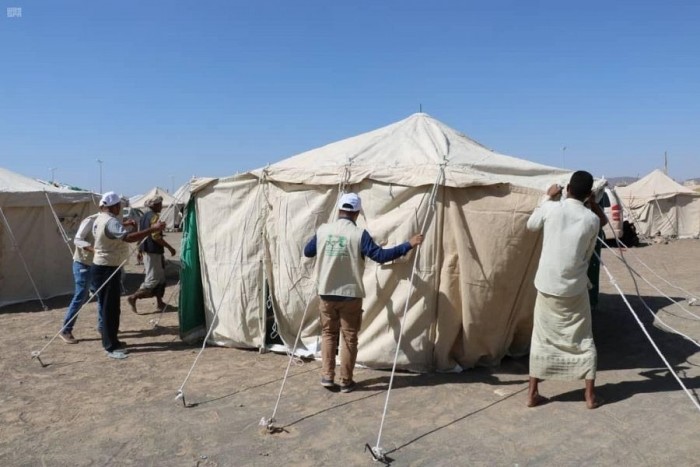 وزع مركز الملك سلمان للإغاثة والأعمال الإنسانية، مواد إيوائية في مخيم الروضة بمحافظة مأرب.