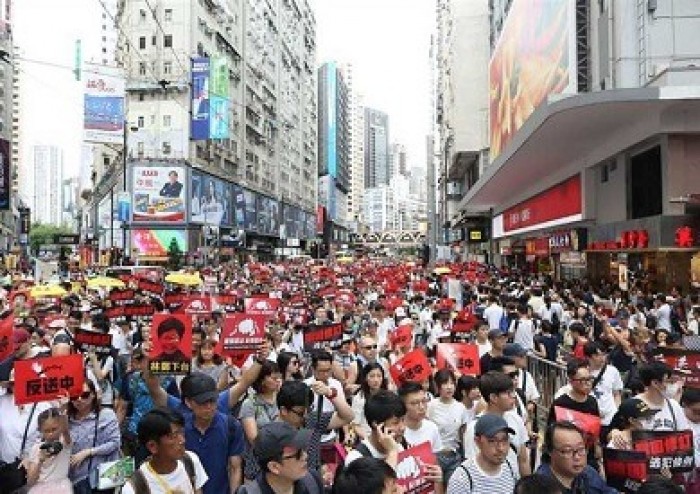 وكانت شرطة هونج كونج قد أطلقت الغاز المسيل للدموع على التجمع الاحتجاجي لتفريقه عقب وقوع اشتباكات.