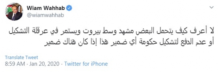 استنكر السياسي اللبناني البارز وئام وهاب، اليوم، التأخر في تشكيل الحكومة في لبنان، وذلك تزامناً مع تصاعد الأحداث في بيروت.