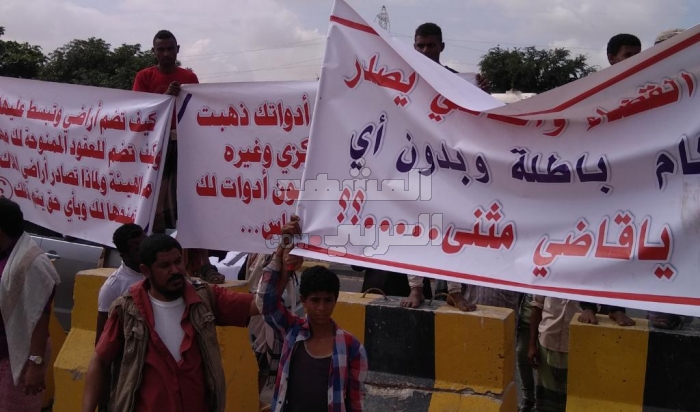 ندد أهالي المدينة الخضراء في مديرية تبن،بمحافظة لحج، خلال وقفة احتجاجية، اليوم الثلاثاء، بفساد المقاول الإخواني المدعو الهمداني، أمام مبنى المحافظة.