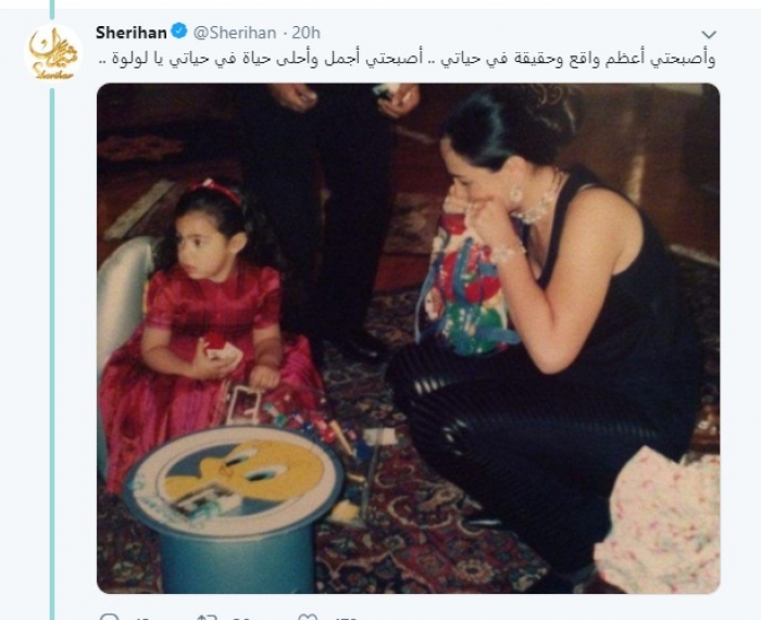 واختتمت رسائلها قائلة: " أصبحتي أعظم واقع وحقيقة في حياتي .. أصبحتي أجمل وأحلى حياة في حياتي يا لؤلؤة".