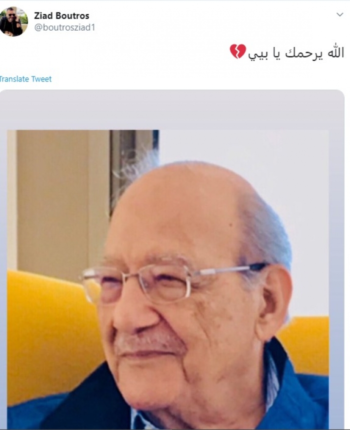 كما كتب الملحن زياد بطرس عبر حسابه بموقع "تويتر"، تعليقا على صورة والده : "الله يرحمك يا بيى".
