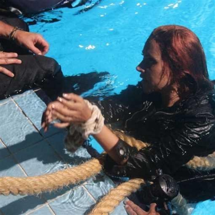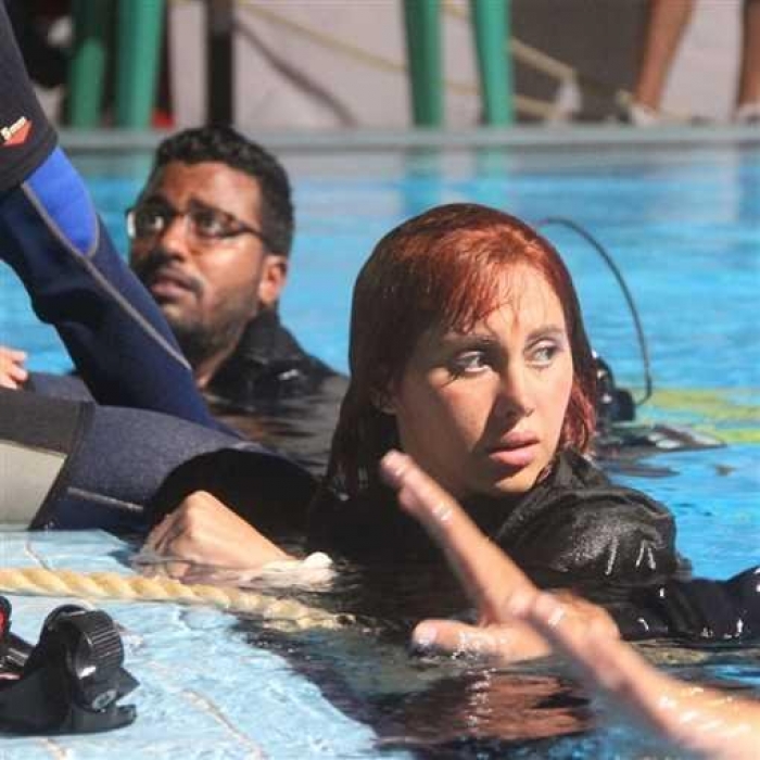 وعلقت "ياسمين" على الصور قائلة: "تدريبات مشهد الغرق من أجمل وأصعب المشاهد في الفيلم لص بغداد في جميع السينمات، مستنية رأيكم في سلمى سليمان".