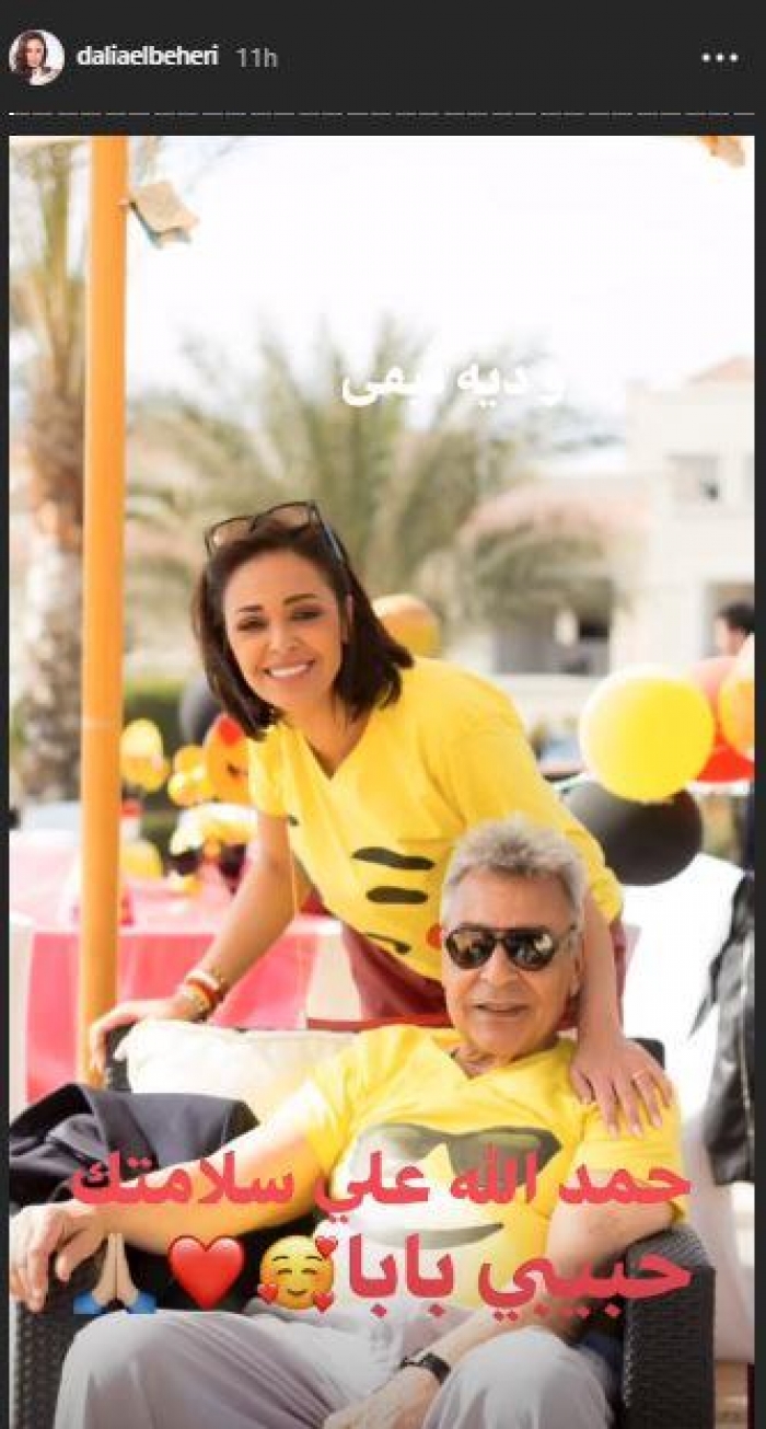 وعلقت داليا على الصور: "حمد الله على سلامتك بابا، نورت بيتك".