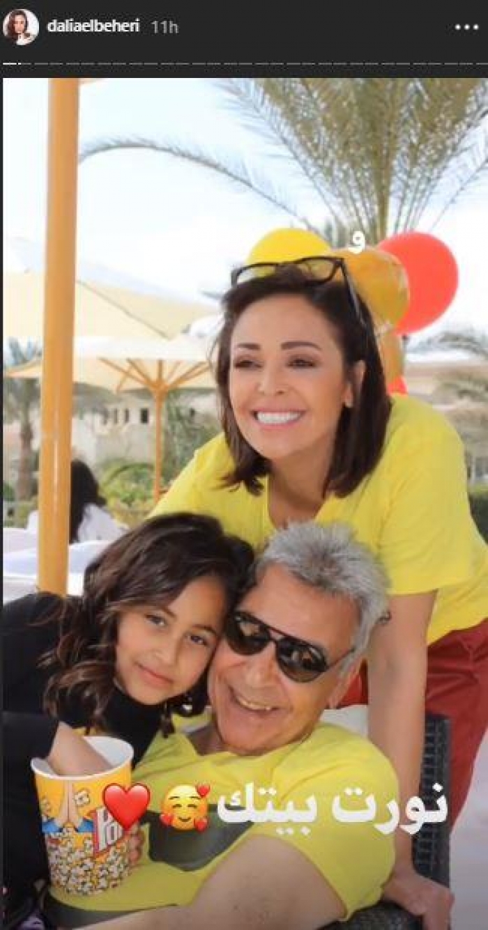 فاجأت الفنانة داليا البحيري جمهورها بصور جمعتها بوالدها وابنتها قسمت، نشرتها عبر خاصية "الاستوري"، على حسابها الرسمي بموقع "إنستجرام".