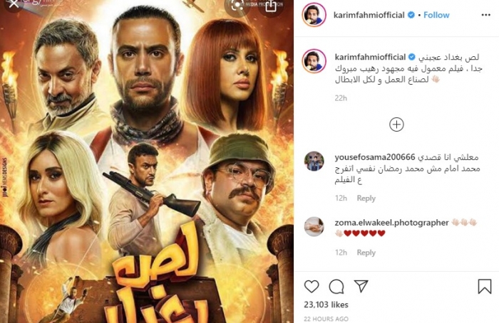 ونشر "كريم" عبر حسابه الرسمي بموقع إنستجرام، صورة للأفيش الرسمي للفيلم، وعلق: "لص بغداد عجبني جدا، فيلم معمول فيه مجهود رهيب، مبروك لصناع العمل ولكل الأبطال".