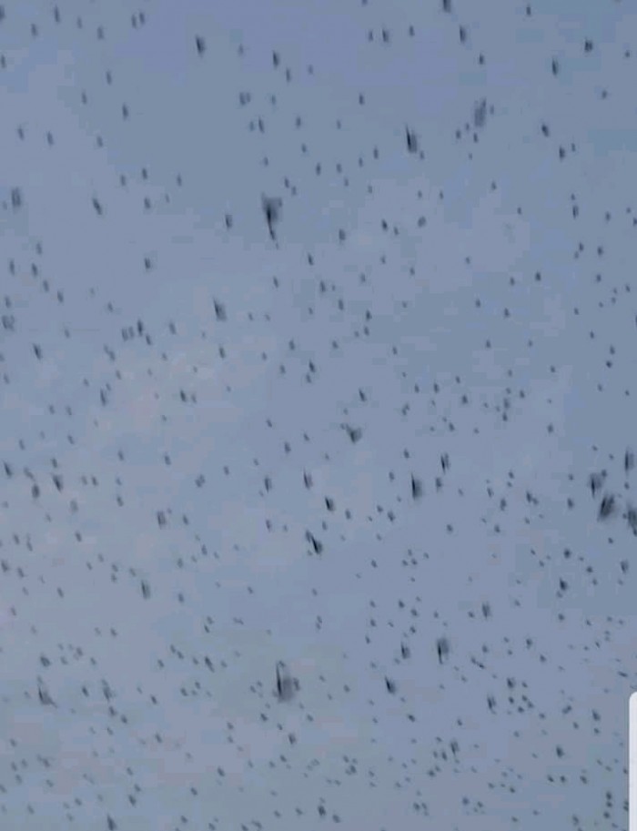 هاجمت أسراب الجراد، المواطنون، عصر اليوم الاثنين، في مديرية ردفان، وغطت سماء المدينة.