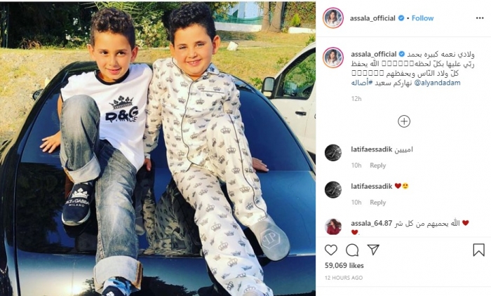 نشرت الفنانة السورية أصالة نصري، عبر حسابها الرسمي بموقع إنستجرام، صورة لنجليها التوأم علي وآدم طارق العريان.