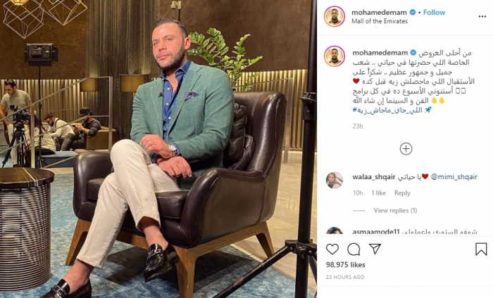 نشر الفنان محمد إمام عبر حسابه الشخصي بموقع "إنستجرام" صورة له يعلق بها على زيارته للإمارات.