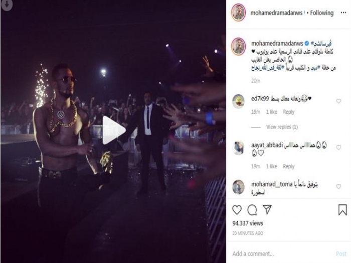 وكتب رمضان، عبر حسابه على "إنستجرام"، قائلا: "فيرساتشي كاملة دلوقتي على قناتي الرسمية على يوتيوب.. الحاضر يعلن الغايب.. من حفلة دبي والكليب قريبًا".
