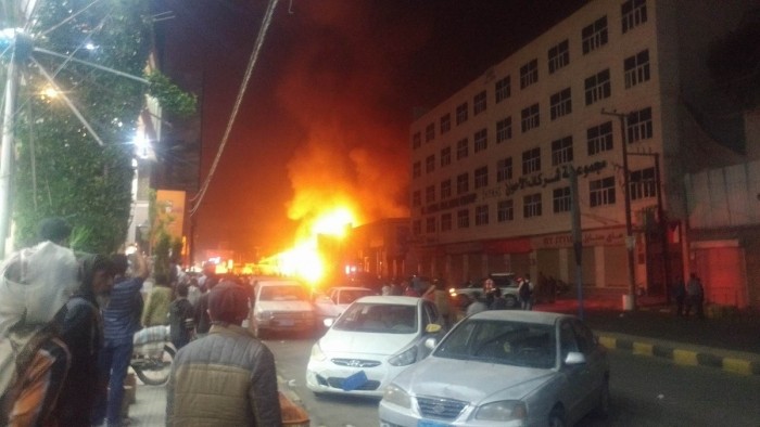 حريق هائل في سوق حوثية سوداء للوقود بصنعاء