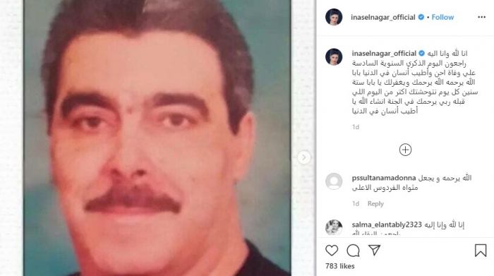 وكتبت إيناس: "إنا لله وإنا اليه راجعون، اليوم الذكري السنوية السادسة على وفاة أحن وأطيب أنسان في الدنيا بابا الله يرحمه، الله يرحمك ويغفرلك يا بابا، ستة سنين كل يوم نتوحشتك أكتر من اليوم اللي قبله، ربي يرحمك، في الجنة إن شاء الله يا أطيب أنسان في الدنيا".