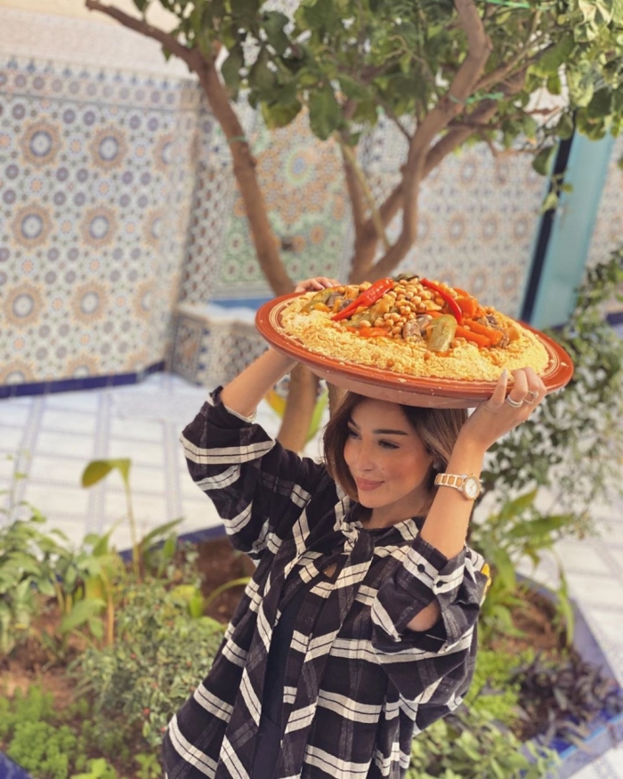 نشرت الفنانة المغربية بسمة بوسيل، زوجة المطرب تامر حسني، صورًا، خلال رحلتها لمدينة مراكش بالمغرب، عبر حسابها بموقع "إنستجرام".