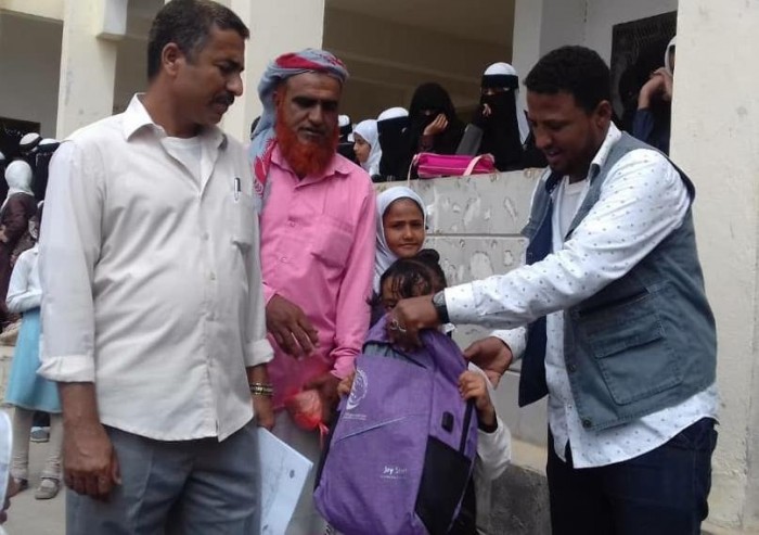 بدعم من سلمان للإغاثة واليونسيف..توزيع 3 آلاف حقيبة مدرسية في مديرية حالمين