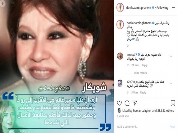 وكتبت دنيا: "والله شرف كبير جدا ليا.. مرسي على تشجيع حضرتك المستمر.. ربنا يخليكي لينا ونفضل نتعلم من أعمالك الجميلة".