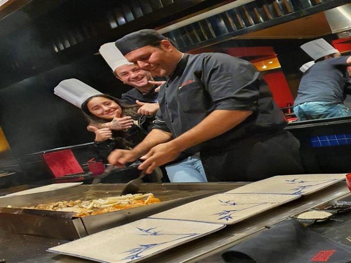 شارك الفنان أحمد الفيشاوي، متابعي حسابه الشخصي على "إنستجرام"، صورة جديدة جمعته بابنة زوجته ندا الكامل، أثناء تواجدهما في أحد المطاعم اليابانية، حيث ظهر الفيشاوي بزي الشيف.