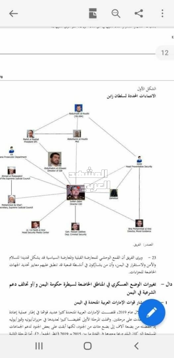 ونوه فريق الخبراء إلى أنه تلقى معلومات عن مشاركة القيادي الحوثي سلطان زابن في تعذيب ناشطة سياسية بموقع تم تحديده من الفريق.