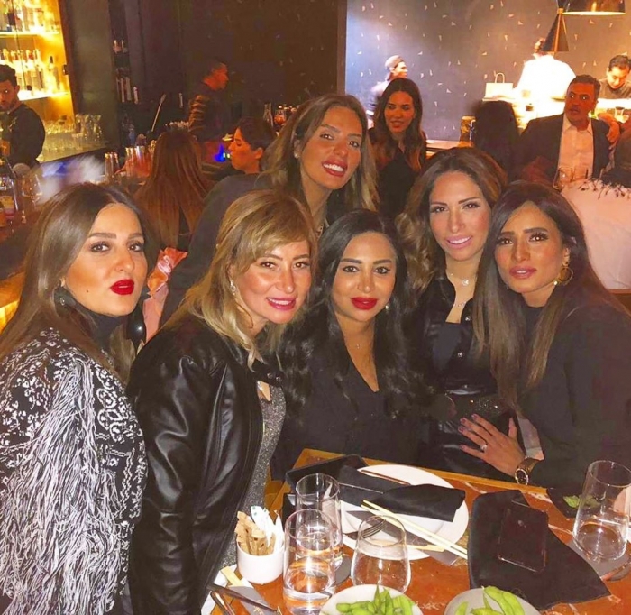 وظهرت زينة وسط مجموعة من صديقاتها من خارج الوسط الفني.