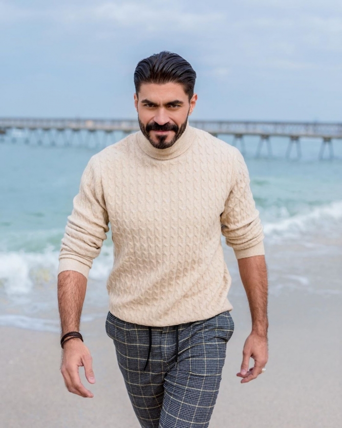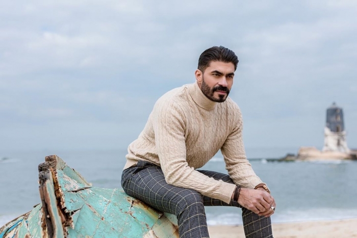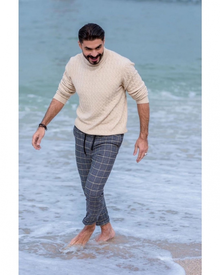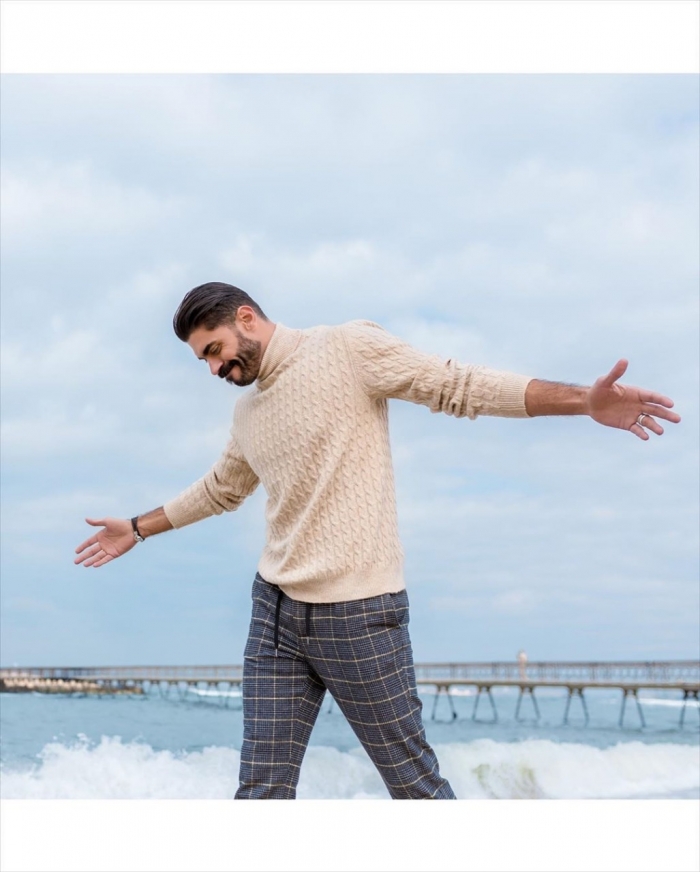 وظهر خالد في الصور بإطلالة شتوية، على البحر خلال وجوده في الإسكندرية.
