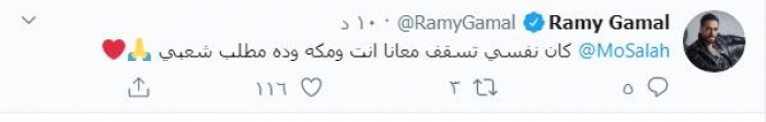 وجه المطرب والملحن رامي جمال، رسالة للاعب المصري محمد صلاح المحترف في صفوف نادي ليفربول الإنجليزي، عبر حسابه في "تويتر".