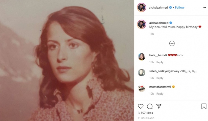 ونشرت "عائشة" عبر حسابها الرسمي بموقع إنستجرام، صورة لوالدتها، وعلقت: "أمي الجميلة، عيد ميلاد سعيد".
