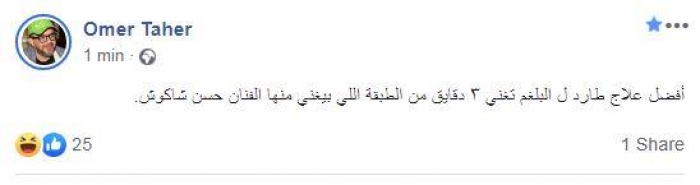 وكتب عمر طاهر: "أفضل علاج طارد للبلغم، تغني ٣ دقايق من الطبقة اللي بيغني منها الفنان حسن شاكوش".