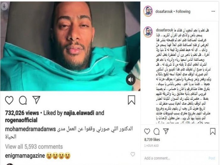 وجهت الإعلامية دعاء فاروق، عدة رسائل شديدة اللهجة للفنان المصري محمد رمضان، تجاه تصرفه بشأن الفيديو الذي نشره داخل غرفة عمليات.