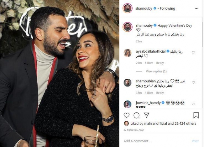 محمد الشرنوبي يحتفل مع خطيبته راندا رياض بعيد الحب