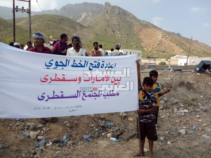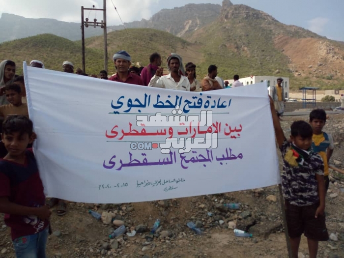 شهدت مدينة حديبو بأرخبيل سقطرى صباح اليوم السبت، وقفة احتجاجية حاشدة للمطالبة بعودة الرحلات الجوية الإنسانية بين الجزيرة ودولة الإمارات.