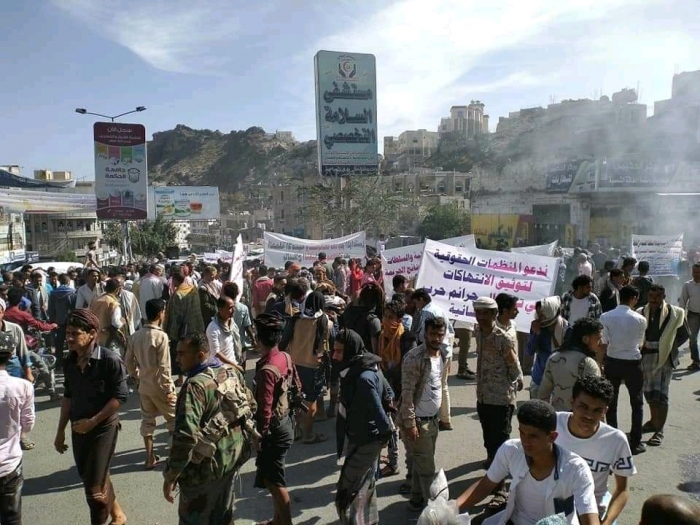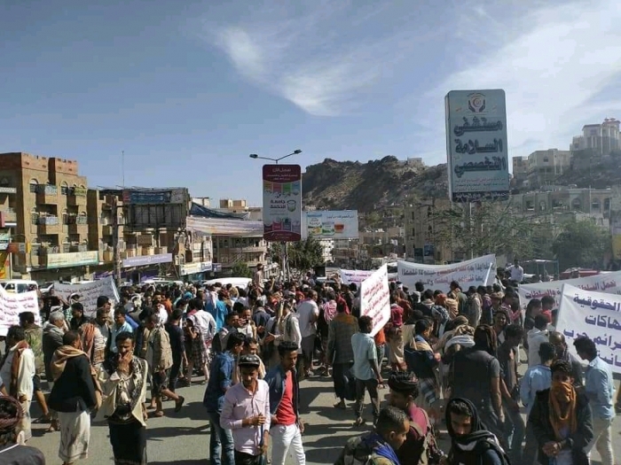 خرجت حشود غفيرة في منطقة وادي القاضي، بمدينة تعز، صباح اليوم الأحد، للاحتجاج على ما تعرضوا له من خوف ورعب جراء الاشتباكات المسلحة التي شهدتها منطقتهم بين فصيلين يتبعون مليشيا الإخوان، مساء الثلاثاء وفجر الأربعاء الماضيين.
