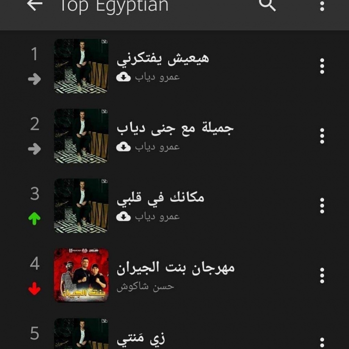 أغاني عمرو دياب تزيح بنت الجيران من صدارة تطبيق أنغامي