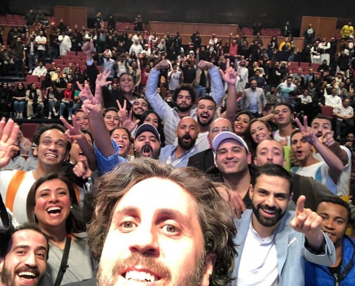 نشر الفنان شيكو صورة تجمعه بأبطال فريق عمل مسرحية "عطل فني" والجمهور السعودي، إذ تعرض حاليا في جدة، بالمملكة العربية السعودية، عبر حسابه الرسمي بموقع "إنستجرام".