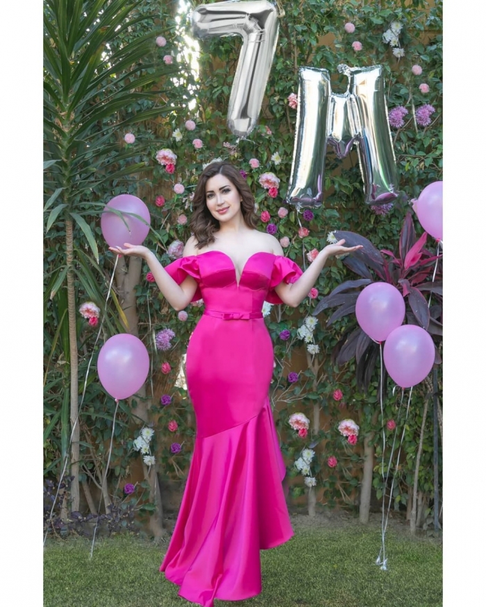 ونشرت نسرين جلسة تصوير جديدة، ظهرت فيها بفستان طويل، وإلى جانبها "7m" في إشارة لوصول عدد متابعيها لسبعة مليون متابع.