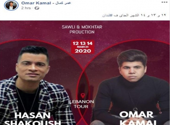 وكتب الفنان عمر كمال: "انتظرونا في ١٢ و ١٣ و ١٤ الشهر الجاى في لبنان".