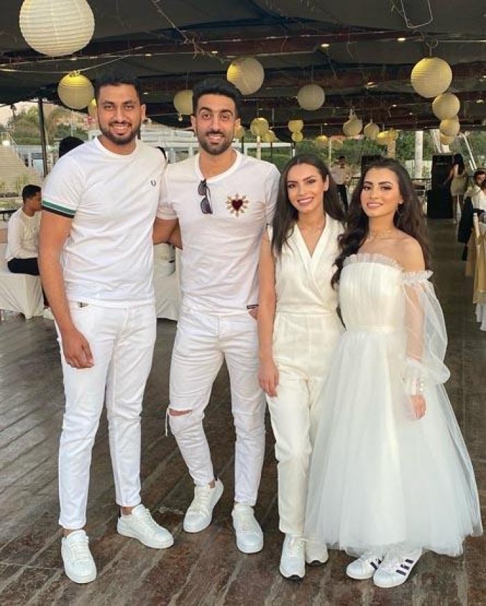 كما العروسين وحرصت كارمن سليمان وزوجها على ارتداء ملابس من اللون الأبيض.