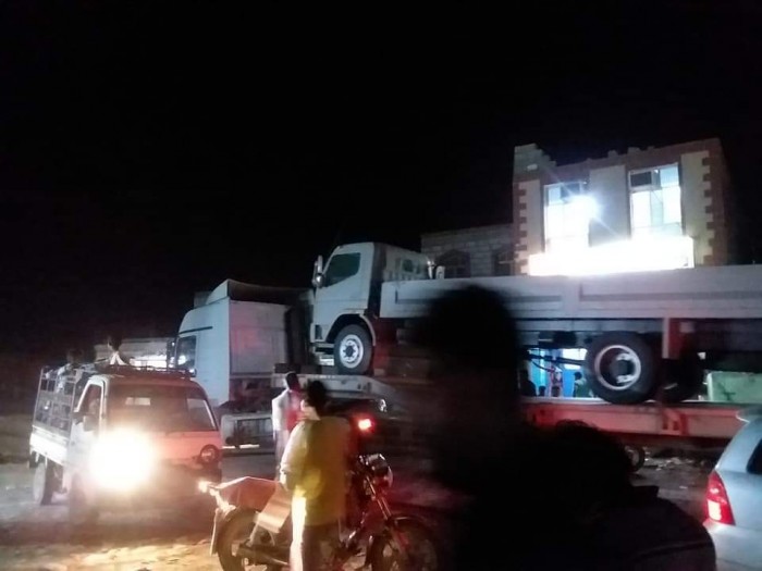 وتشمل القافلة عشرات القاطرات تحمل على متنها أطقم ومدرعات ومعدات عسكرية، في طريقها إلى العاصمة عدن.