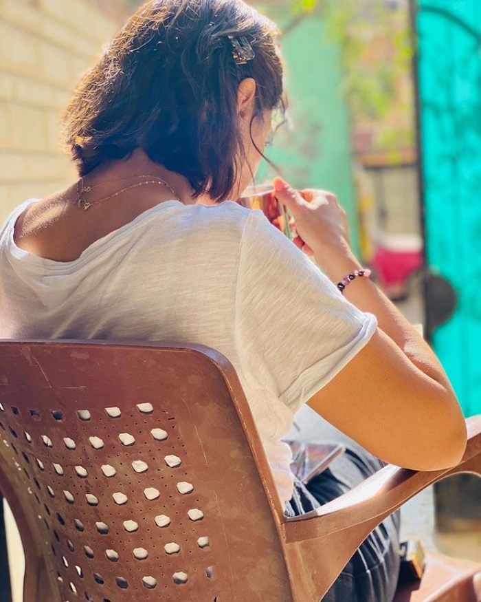 وظهرت منة في أحدث إطلالتها بملابس صيفية دون مكياج.