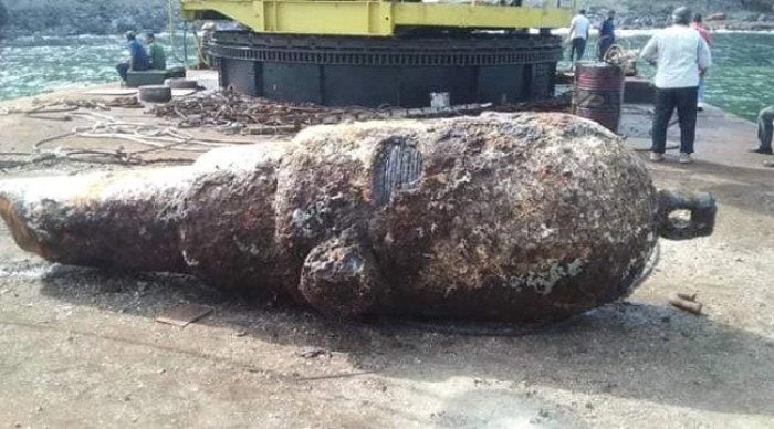 وانتشل طاقم من الغواصين، أمس، مدفع قلعة صيرة العثماني، الذي سقط في البحر.