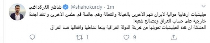 انتقد الكاتب الصحفي العراقي شاهو القرةداغي، اليوم، المليشيات الإرهابية الموالية لإيران في العراق، مؤكدًا أن تلك المليشيات تمول من خزينة الدولة العراقية.