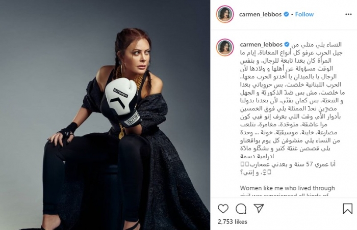 وكتبت كارمن: "النساء يلي متلي من جيل الحرب عرفو كل أنواع المعاناة، أيام ما المرأة كان بعدا تابعة للرجال، وبنفس الوقت مسؤولة عن أهلها و ولادها لأن الرجال يا بالميدان يا أخدتو الحرب معها.. الحرب اللبنانية خلصت، بس حروباتي بعدا ما خلصت".