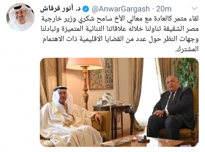 قرقاش يُغرد عن لقائه بوزير الخارجية المصرية