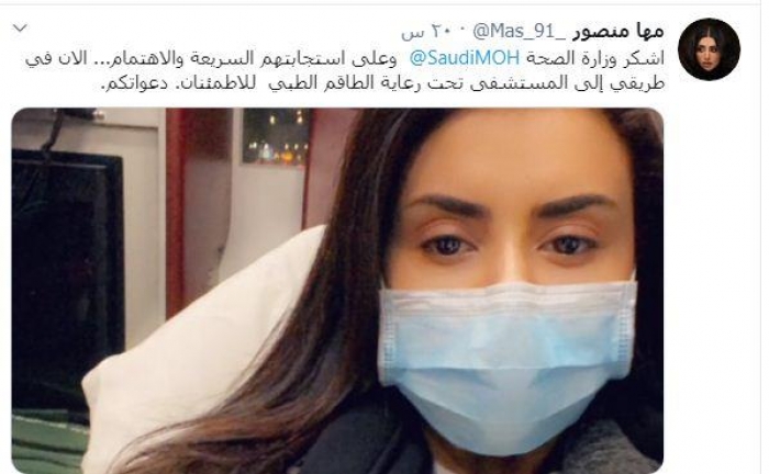 وتم نقل "مها" لإحدى المستشفيات بالعاصمة السعودية الرياض، لحين الاطمئنان عليها، وإذا ما كانت مصابة بالكورونا أم لا.