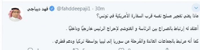 سياسي سعودي يُعلق على حادث التفجير بمحيط السفارة الأمريكية بتونس