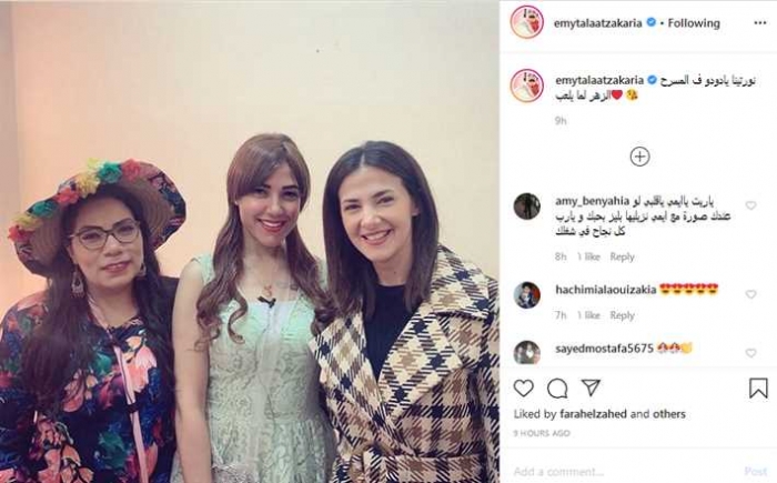 ونشرت الفنانة الشابة إيمي طلعت زكريا عبر حسابها الشخصي على موقع "انستجرام"، صورة لها من كواليس المسرحية، وظهرت فيها بصحبة كلاً من الفنانتين دنيا سمير غانم، وإيمان السيد.