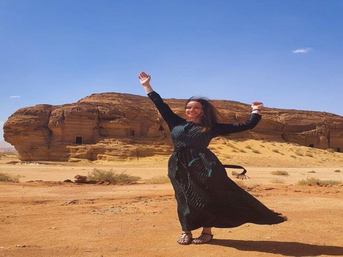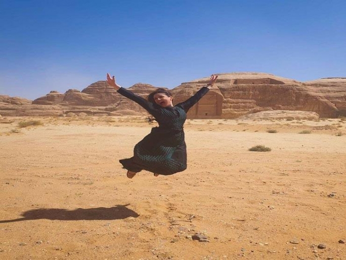 وظهرت ريا في الصور من أمام أحد المعالم الموجودة بطنطورة، وعلقت: "هلا والله، بحيكم بعبارة الترحاب القريبة لقلبي من محافظة العلا بالسعودية الغالية، من أجمل وأكثر الأماكن سحرًا يلي زرتها بحياتي".