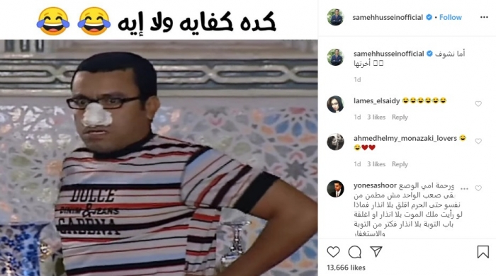 علق الفنان المصري سامح حسين على انتشار فيروس كورونا مؤخرًا، بصورة كوميدية نشرها، عبر حسابه بموقع "إنستجرام".